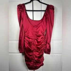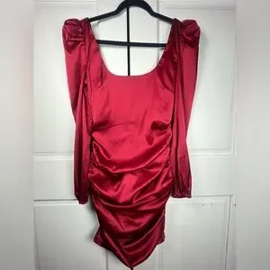 NWT Revolve’s More To Come Blaire Mini Dress Ruched Puff Sleeve Satin Red Sz S