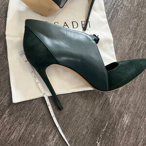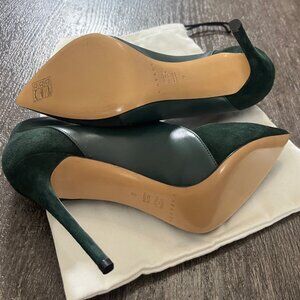 CASADEI Pointed Toe Cutout Stiletto Heels Dark Green Suede Leather Pumps