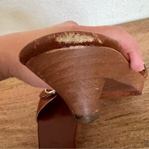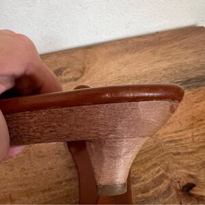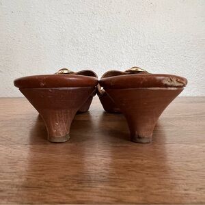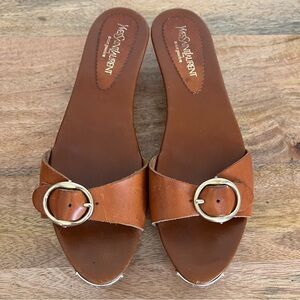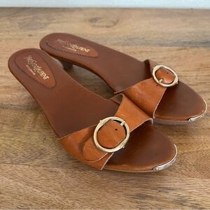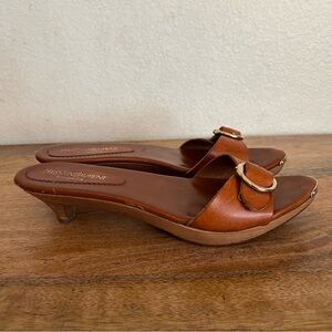 Yves Saint Laurent Rive Gauche Caliente wooden kitten heel sandals brown leather