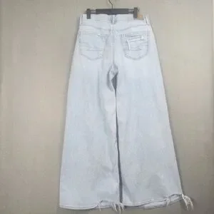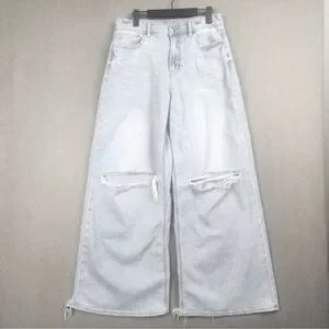 AE Super High Rise Ultra Wide Leg Distressed Baggy Fit Light Blue Jean Size 6