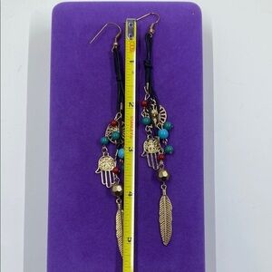 💛 Classic Bohemian Gold Hamsa Turquoise Dangle Earrings
