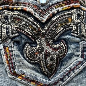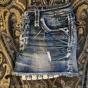 RARE RR jean shorts these shorts are beyond beautiful. Look at the detail in the pockets carefully it’s got like an orange leopard print. With peekaboo pockets.