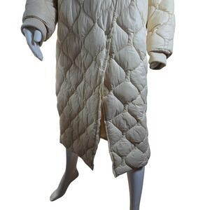 River Island Padded Quilted Long Coat Womens 6 Cream Maxi Aysmmetrical Luxury