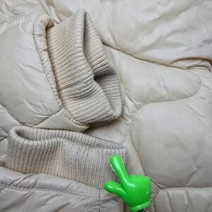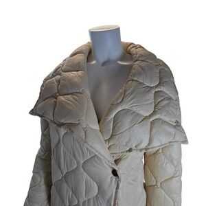 River Island Womens Size 6 Cream Quilted Longline Puffer Coat Jacket Maxi Aysmmetrical Button Front
