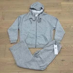 ALO Yoga Unisex Gray Zip-Up Hoodie and Jogger Set