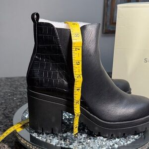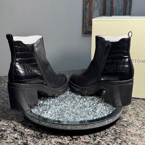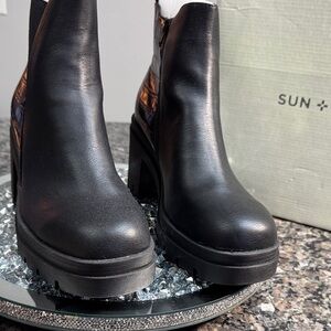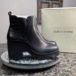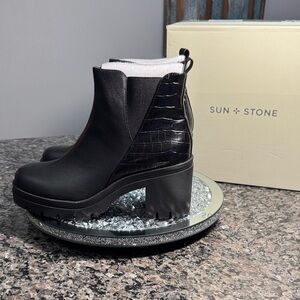 Sun + Stone Textured croc embossed Black Ankle Booties NWT 11