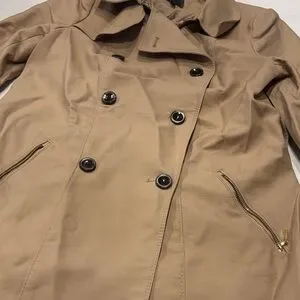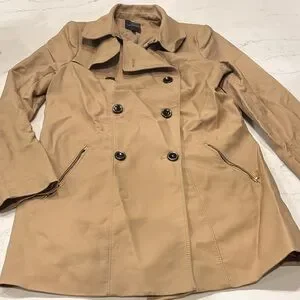 Stylish trench coat by The Limited. Features a double-breasted front and classic design. Perfect for any occasion. **Missing belt and small marking on sleeve, may come out with dry clean. Sold as is