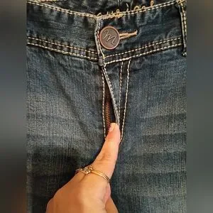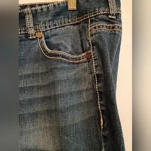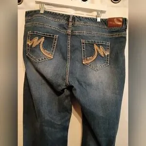 Stylish boot cut jeans by Maurices. Size 20 regular. Great pocket detail and cute distressing and faded look. Bought this way not from wear. Comfortable fit. Versatile blue shade.
