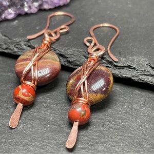 Artisan Copper and Earthy Agate and Jasper Stone Earrings