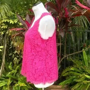 — Solid hot pink tank with hot pink eyelash lace overlay