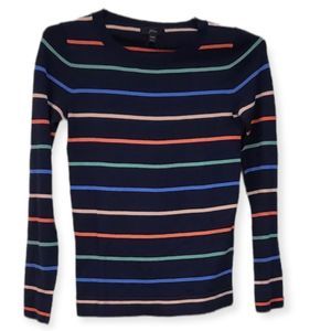 J. CREW NWT Navy Rainbow Striped Long-sleeved Tshirt XXS