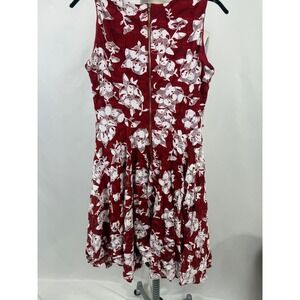 Keywords: floral dress, fit and flare dress, sleeveless dress, maroon dress, white floral dress, cocktail dress, party dress, wedding guest dress, womens dress, danny and nicole dress, size 4 dress, summer dress, spring dress, casual dress, floral print