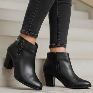 Vionic Georgia Leather Ankle Booties Womens 10 Black Studded Orthaheel VW4146