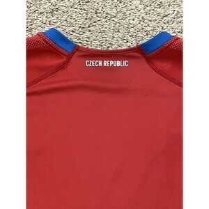 This product is a rare Czech Republic national soccer jersey in men's size XXL. Officially licensed by Puma, this red jersey features the iconic lion face design, representing the Czech Republic national team. Made in Vietnam, this jersey is a must-have for fans of the Football Association of the Czech Republic and collectors of unique soccer apparel. Perfect for showing support for the Czech Republic during national team matches or football tournaments.
