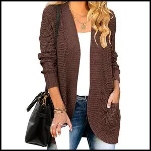 Style: Open front cardigan, boyfriend slouchy style