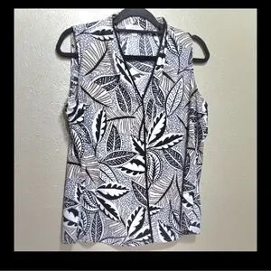 Calvin Klein Leaf Print Women's Top Fall Sleeveless Lightweight Office Career L