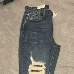 Elevate your style with these chic blue distressed jeans. Perfect for a casual day out.