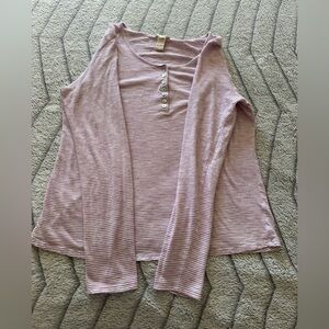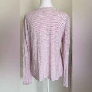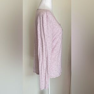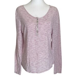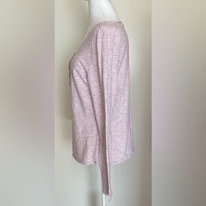 Sundance Women’s Top White Pink Stripe Henley Neck Long Sleeve Size M Cotton