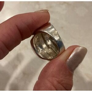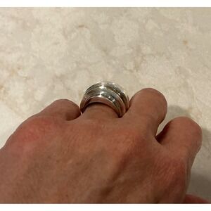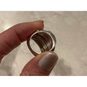 14K Gold Accent Stainless Steel Band Ring Size 6.5 Statement Jewelry
