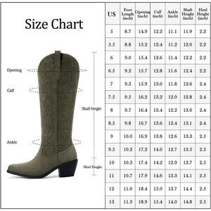 Classic Design: The mid calf cowboy boots for women are designed with classic embroidery, rubber sole and mesh fabric lining.