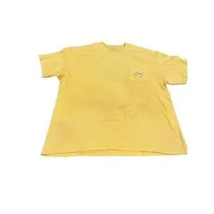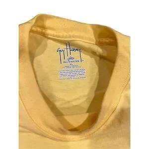 Guy Harvey Marlin Boat Men's Back-Print Tee w/ Pocket Original Fit 100% cotton t-shirt, short sleeves yellow color size XL with store stains. Zoom pictures for final description.