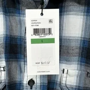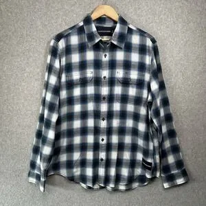 Calvin Klein Jeans Mens Button Up Plaid Shirt Blue Light Flannel Gravity Large