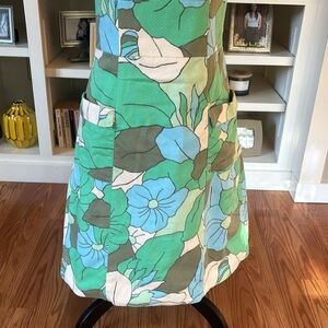 Boden Green and Blue Floral Retro Pocket Sleeveless Shift Dress Size 6 Long