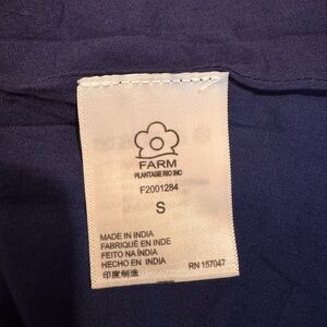 The Farm Rio Navy Beaded Women's Hi-Low Dress in size Small is a stylish sundress made of cotton material. Featuring a sweetheart neckline, short sleeves, and beaded accents, this knee-length dress in a solid navy color is perfect for any casual or semi-formal occasion. The dress is designed by the brand Farm Rio and is tailored for women who are looking for a trendy and comfortable outfit option.