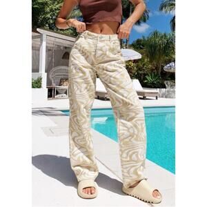 Tiger Mist Sergio Tan & White Swirl Print High Waist Boho Jeans XS
