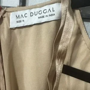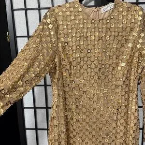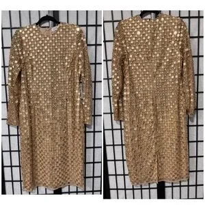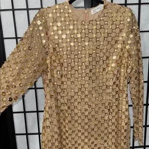 ✨ Mac Duggal Gold Beaded Georgette Long Sleeve Fitted Midi Dress ✨ size 14