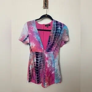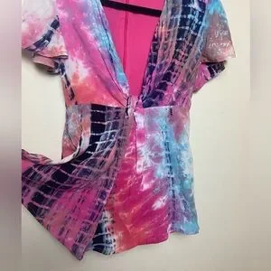 Colorful Tie-Dye v-neck Romper by Blue Blush