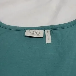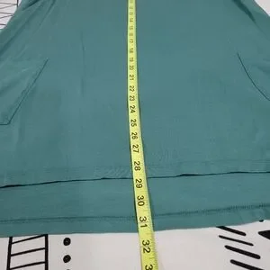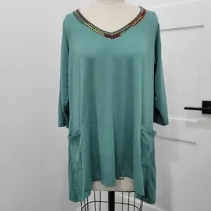 EUC LOGO Lori Goldstein Women's Green Knit Pocket Beaded Tunic Top Blouse