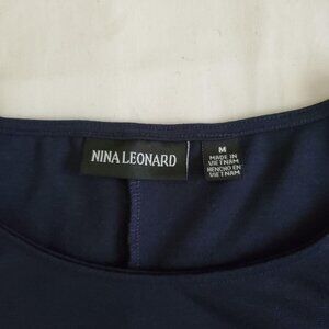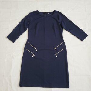 Nina Leonard Women’s Navy Blue Zippered Pockets 3/4 Sleeve Sheath Dress Size Medium