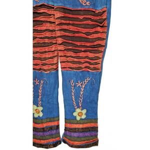K.P.C. Women's Handmade Bohemian Embroidered Stonewash Blue Floral Pants Medium