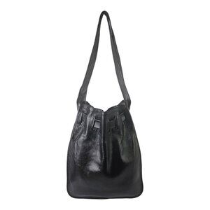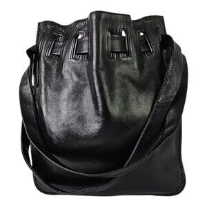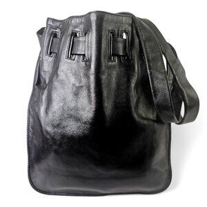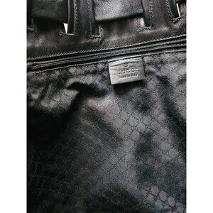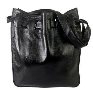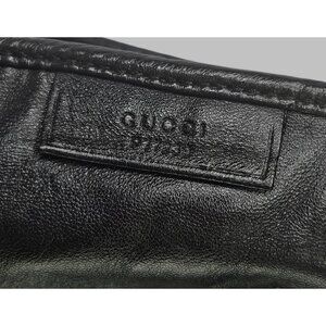 GUCCI Tom Ford Black Leather Drawstring Shoulder Bag Tote GG Double Straps Italy