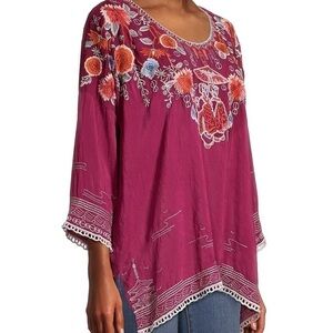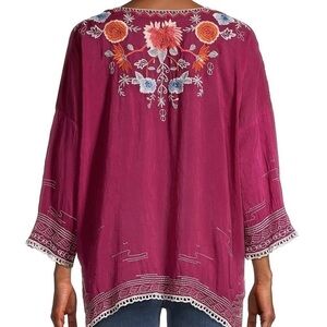 This beautiful wine colored blouse by Johnny Was has a Japanese floral theme.