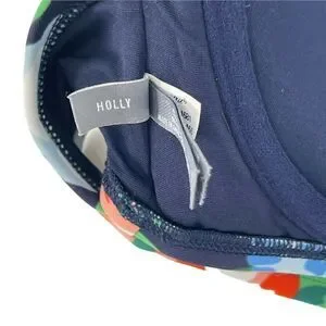 Aerie Bikini Top Holly Blue Floral Strapless Underwire Size 34B Bow Swimwear