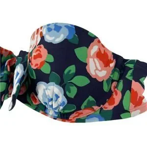 Aerie Bikini Top Holly Navy Blue Floral Strapless Underwire Padded Bow Swimwear Bohemian Preppy