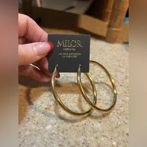 MILOR Italy 14K Yellow Gold Resin Filled Large 2 1/2 Inch Hoop Earrings NWT