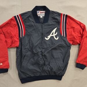 VTG 90s Majestic Atlanta Braves Bomber 1/2 Zip Pullover Men's Large Authentic Collection