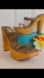 Designed in a striking snake skin print, they feature bold chunky wooden heels that add both height and retro flair.