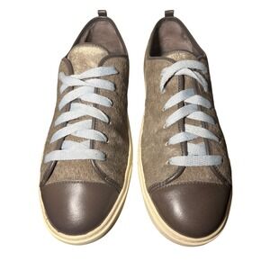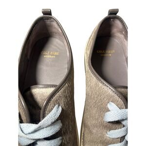 Cole Haan Grand.OS Calf Hair Sneakers Taupe Grey Leather Toe D42696 Womens 8B