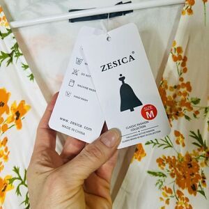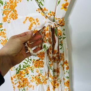 Zesica White Orange Sunflower Wrap Dress MIDI Sundress NWT!