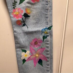 Levi’s 501 Rialto Jean Project Lightwash Pink Floral Hand Painted Jeans W32 L26