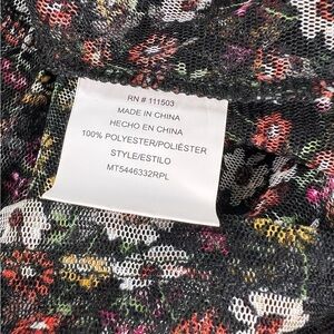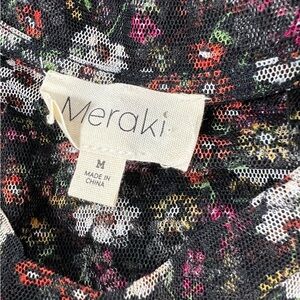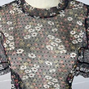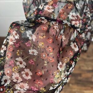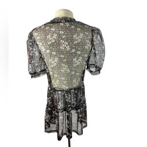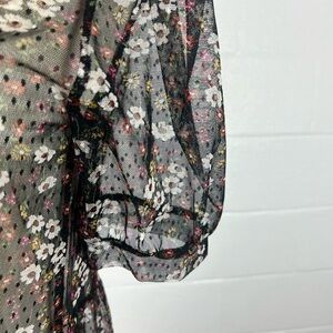 Meraki sheer tulle top size M whimsygoth Black floral puff sleeve tiered