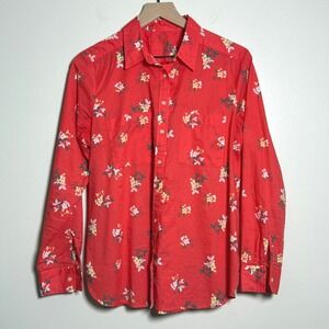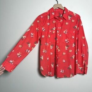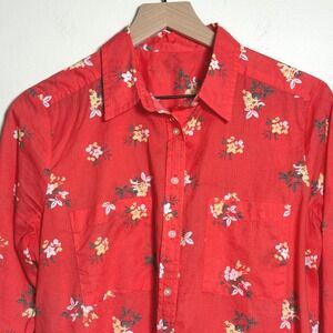 LOFT Womens Button Up Shirt XL Red Orange Cotton Floral Preppy Spring