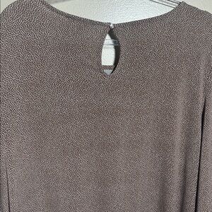 Chic taupe blouse featuring a keyhole back. Ideal for versatile styling.