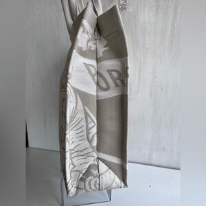 This Burberry tote is made from canvas and features the signature jacquard Equestrian Knight Design. It also includes a removable zip pouch.