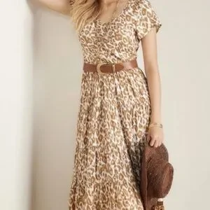 Soft Surroundings Short Sleeve Kara White Mocha Leopard Dress Size L