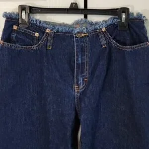 Vintage Jordache Womens Dark Wash Jeans Waist Size 32" Raw Waist Flare 80s